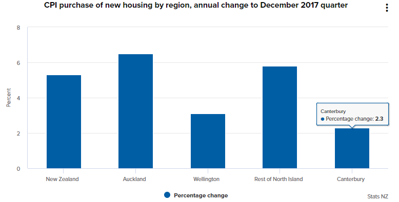建筑业是CPI年率1.6%的涨幅的主要背后推动力。截止2017年12月,全国范围的新建房数量增加了5.3%。其中,奥克兰地区增长量为6.5%,惠灵顿为3.1%,坎特伯雷为2.3%。