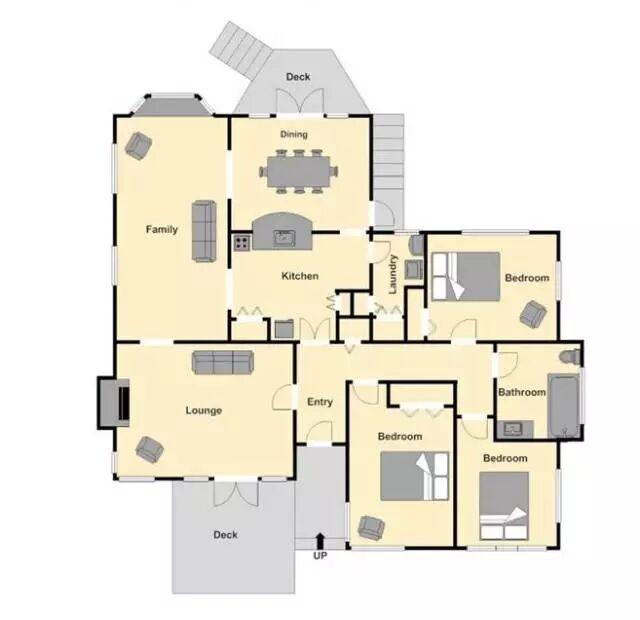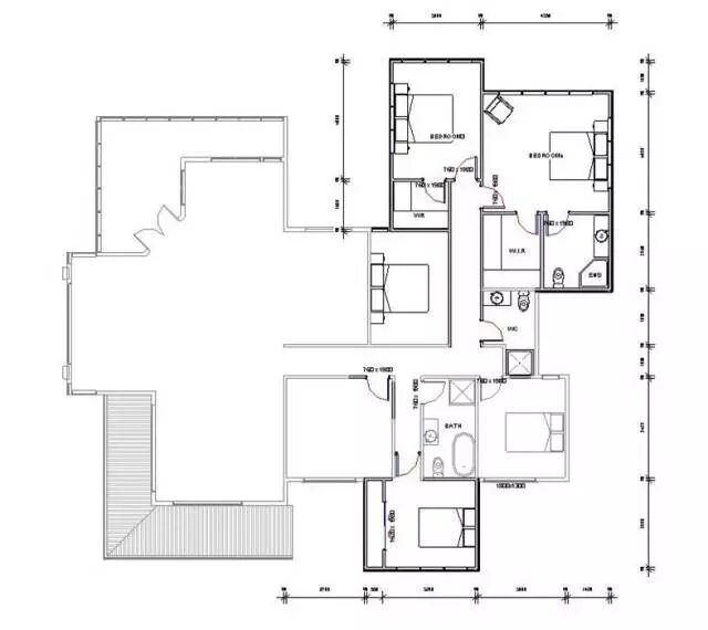 其次从房屋的内部空间来考虑,充裕的内部空间有助于设计师规划不同的功能区域,使动线更合理、居住更舒适,也能更好的加强室内外的交流互动。最后,水点的位置也是需要花些心思考虑的。以下图为例: