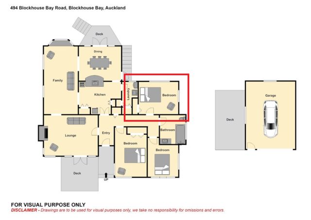 红框中原本是洗衣房的位置,和其中一间房仅一墙之隔,设计师考虑到屋主的需求,将洗衣房和相连的Dining room改造成一间主人套房。这样客厅的区域也可以重新规划,是居住空间更合理,满足屋主的居住需求。