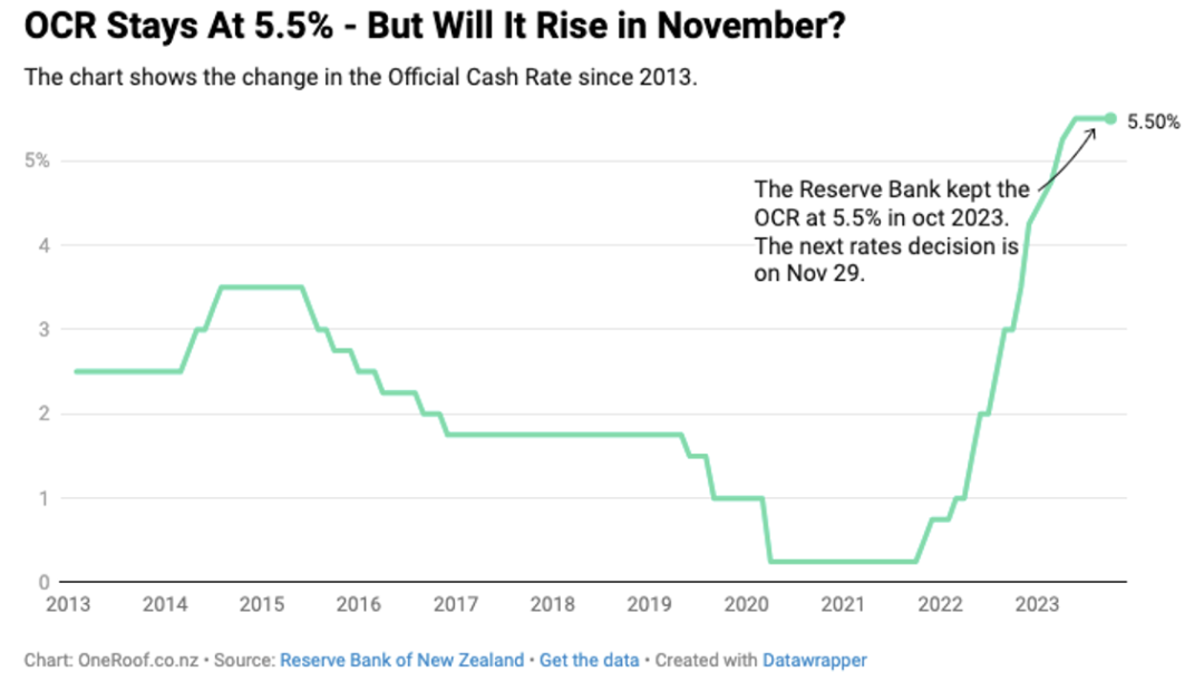 自今年5月以来,官方现金利率(OCR)就一直维持在5.5%的峰值水平不变,新西兰央行在上一次的货币政策声明中也暗示了即将在11月29日召开的本年度最后一次货币政策声明会上调整OCR的可能性非常小。