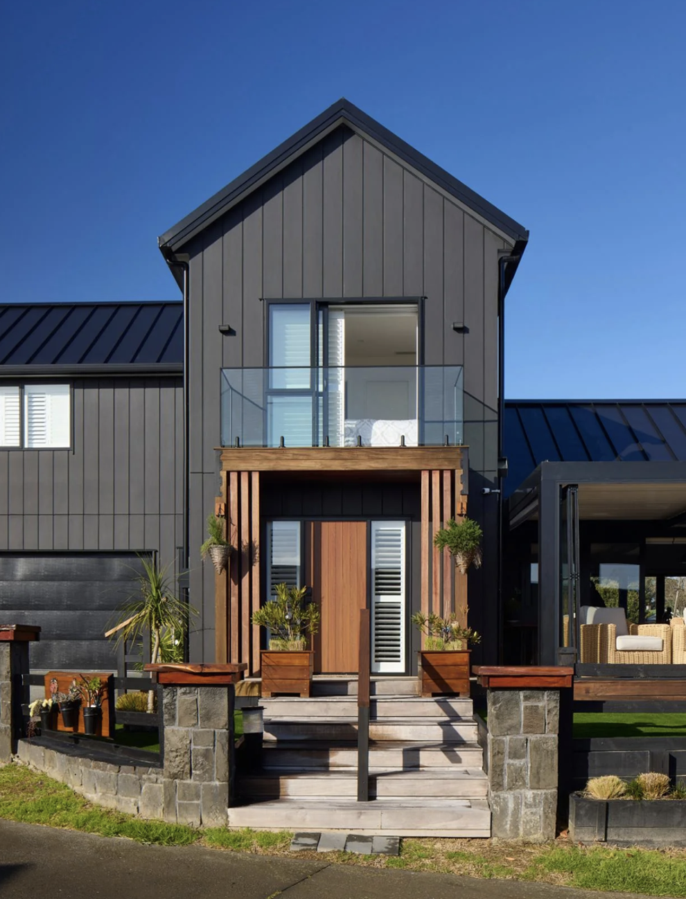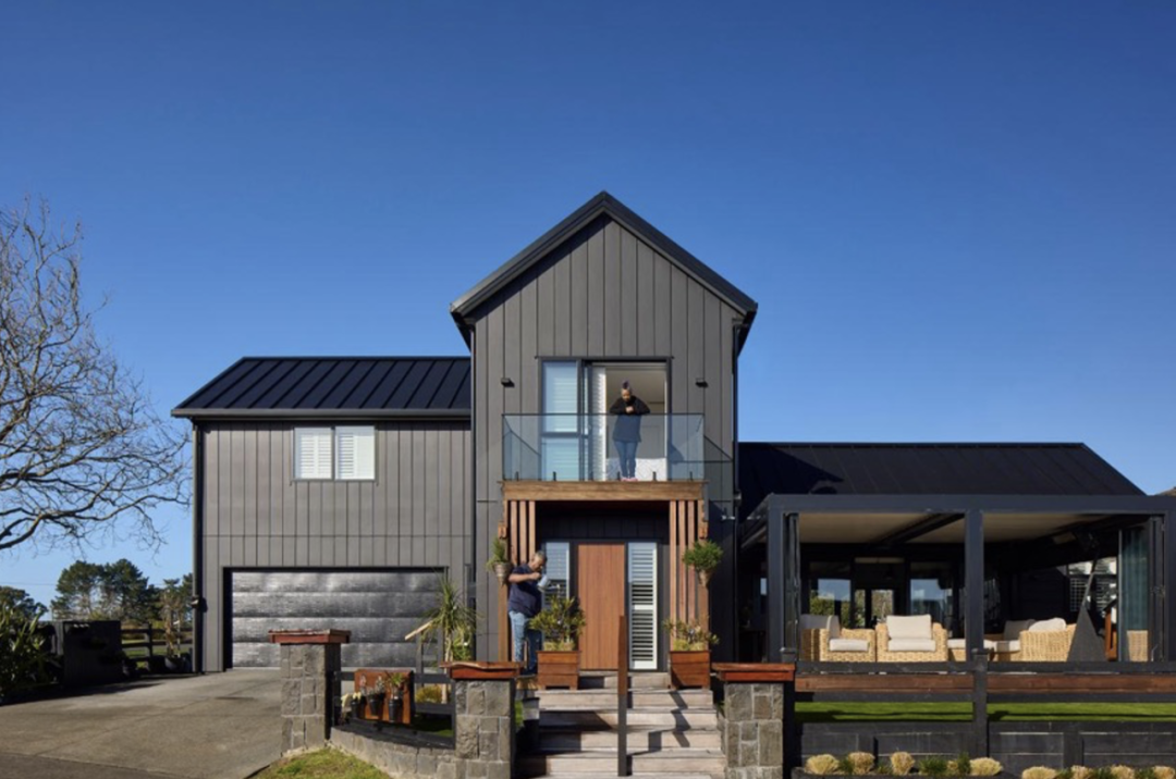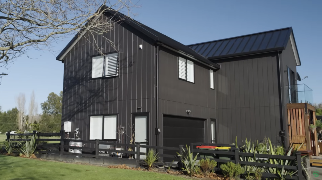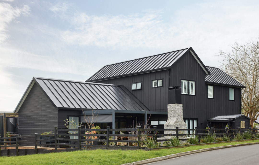 最终,他们在外墙大量使用了James Hardie的Oblique™ 护墙板,并采用了水平和垂直的两种安装方式。这样一来,即保证了现代农舍风格的美感,又能满足建房的要求。深灰色的外墙更增强了建筑的视觉效果,Neville表示:“Oblique™ 护墙板与斜屋顶相辅相成,让房子看起来更大更有气势。”