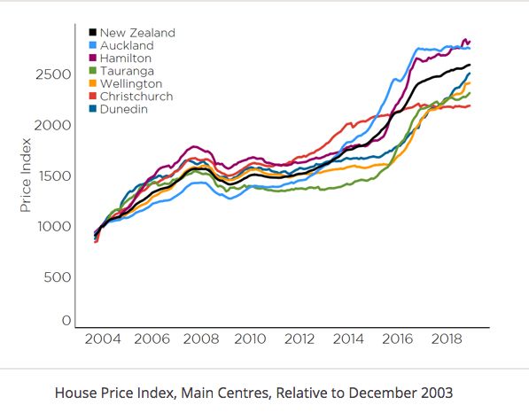 其他大城市惠灵顿、Hamilton、Tauranga和基督城去年房价涨幅分别为7.8%、5.0%、3.9%和0.6%。