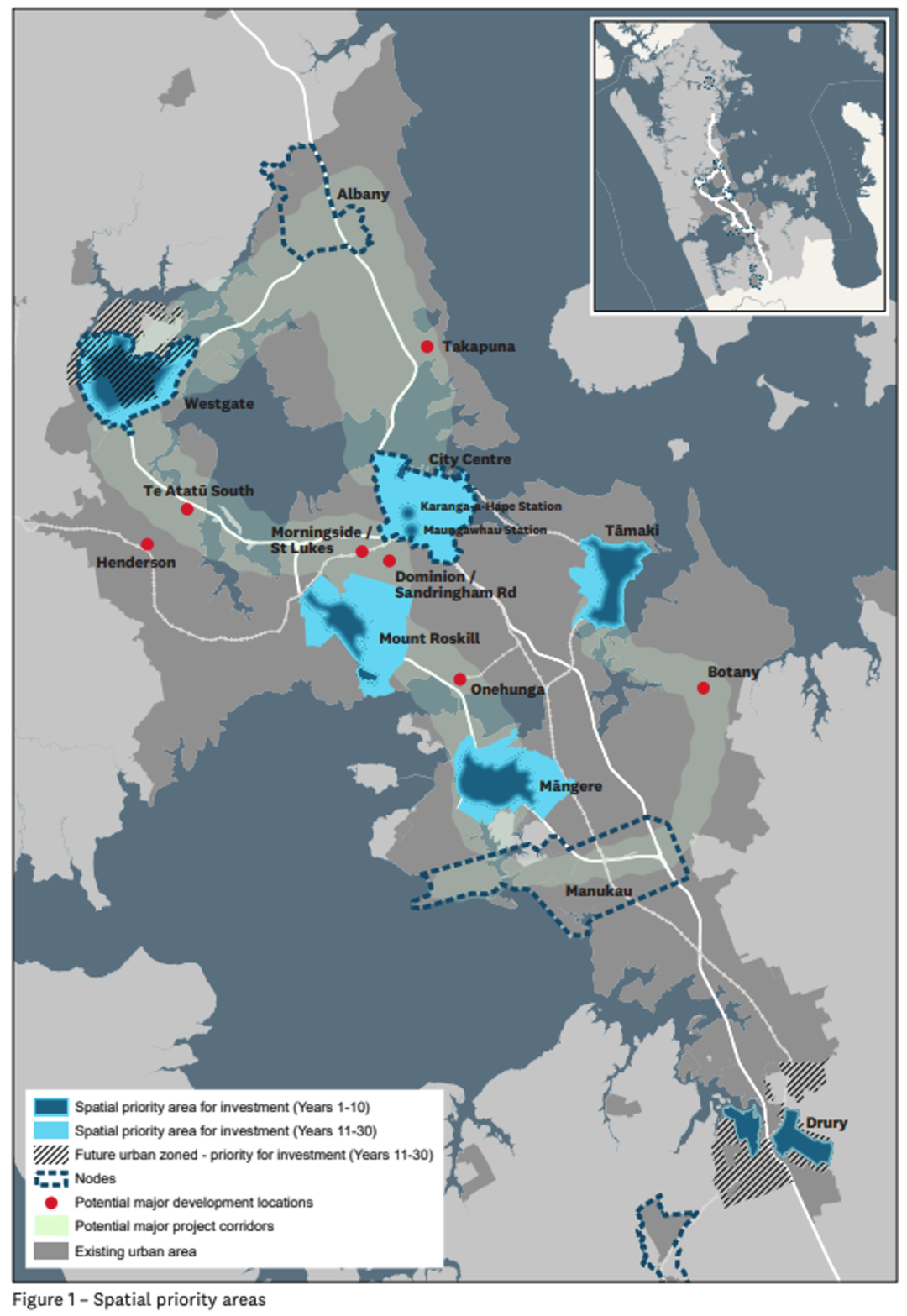 前10年,主要开发的地区将是这么几个:Mt Roskill、Tamaki 、Māngere地区,奥克兰市中心,Westgate 以及 Drury-Ōpaheke 地区的部分地区,同时会有一些已经挑选出来的备选地区作为第二阶段开发的主力区域。