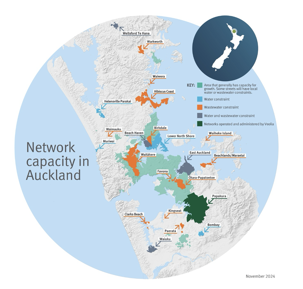 当前奥克兰各区水务网络容量情况 (来源:奥克兰市议会)