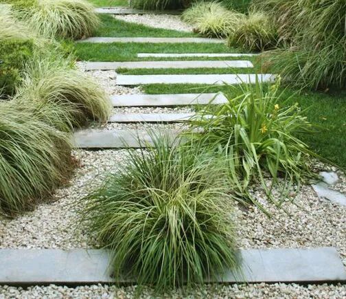 大部分的carex品种叶片较为柔软蓬松,非常适合在石子路上或边缘,以及石块边种植。有一种独特的野趣。也可以种植在直接购买的大花盆中,形成视觉焦点景观。Carex有许多种颜色,蓝灰色,绿色,锈红色,锈黄色等等。