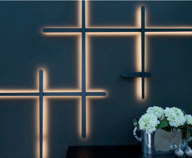 灯罩衔接处的每个点都是可以旋转的,能够使得整个灯具调整成不同造型。Daniel特地为灯罩选择了与墙面相近的颜色,以追求更好的光影效果。