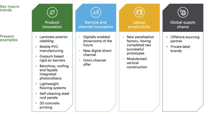 其发布的战略PPT指出,任何决策都需要使公司站在充分利用重要宏观趋势的位置上。产品创新、服务和渠道创新、劳动生产力和全球供应链是四大方向。