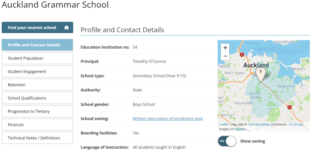 新西兰公立学校实行学区制入学,根据家庭住址决定孩子能上附近的哪所学校。公立学校的学费价格基本上是免费的,且每年都会从政府拿到不菲的补助,每个公立学校都有各自严格规范的入读学区范围。