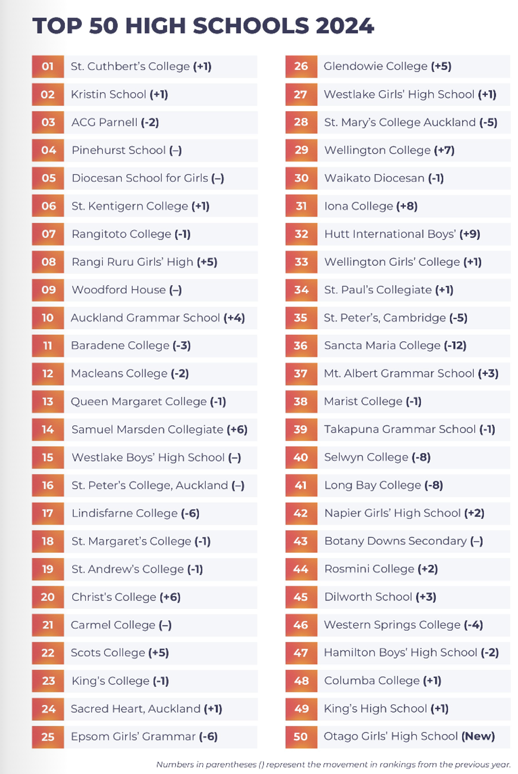 截至2020年,该校有2606名学生,是新西兰第三大学校,也是新西兰名校之一,历届学生的学术成绩均在全国所有中学排名上名列前茅,同时在体育方面学校也获奖无数,这让其在全国学校排名中一直遥遥领先。在2024年Crimson排行榜上,奥克兰文法学校位列第十,在奥克兰公立学校里排名第二。