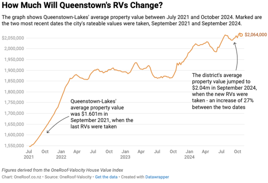2021年7月至2024年10月皇后镇湖区RV变化示意图(来源:OneRoof)