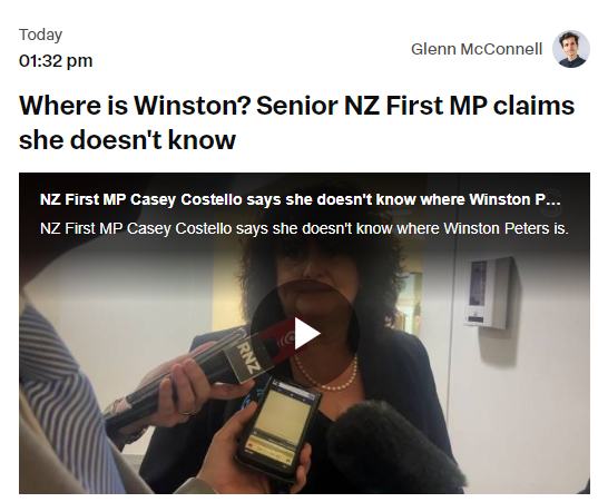 目前,三党谈判还没有正式进行,行动党党魁David Seymour今晨表示,三个政党的党魁“很有可能”会在今天会面。但奇怪的事很快出现了:媒体报道称,本应在惠灵顿的优先党党魁Winston Peters“神秘失踪”,没有参加党内午餐,也没有和其他两党见面。优先党资深议员Casey Costello称她甚至不知道Peters是否在惠灵顿。