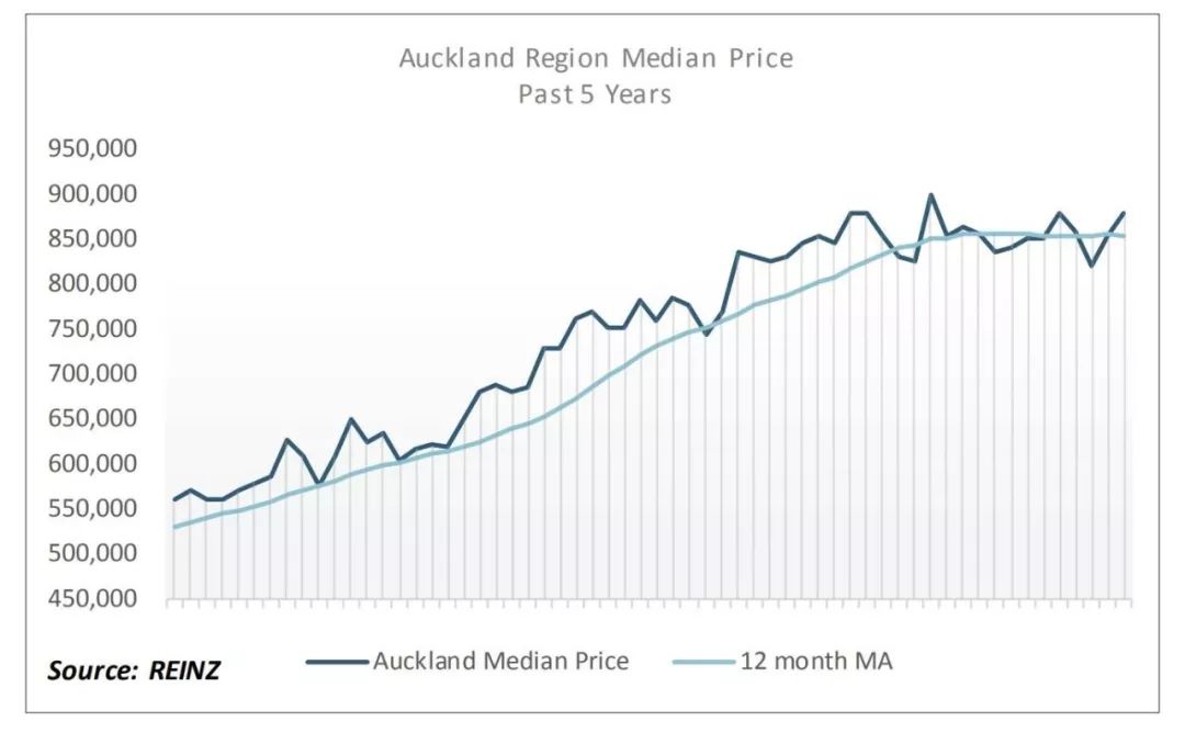 奥克兰房价中位数则同比去年3月降低了2.2%,从900,000新西兰元落到880,000新西兰元。