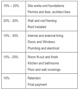 建筑贷款:为分步放款(progressive drawdown)。是根据建房计划一步一步放款的,需要按步骤拿invoice和现场工程进度的照片进行证明。
