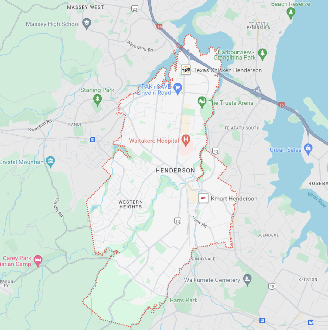Henderson位于奥克兰西区,距离奥克兰市中心约15公里。向东前往市区及其他区域,或是向北前往Westgate购物中心及北岸,区域内的16/18号高速都十分便利。