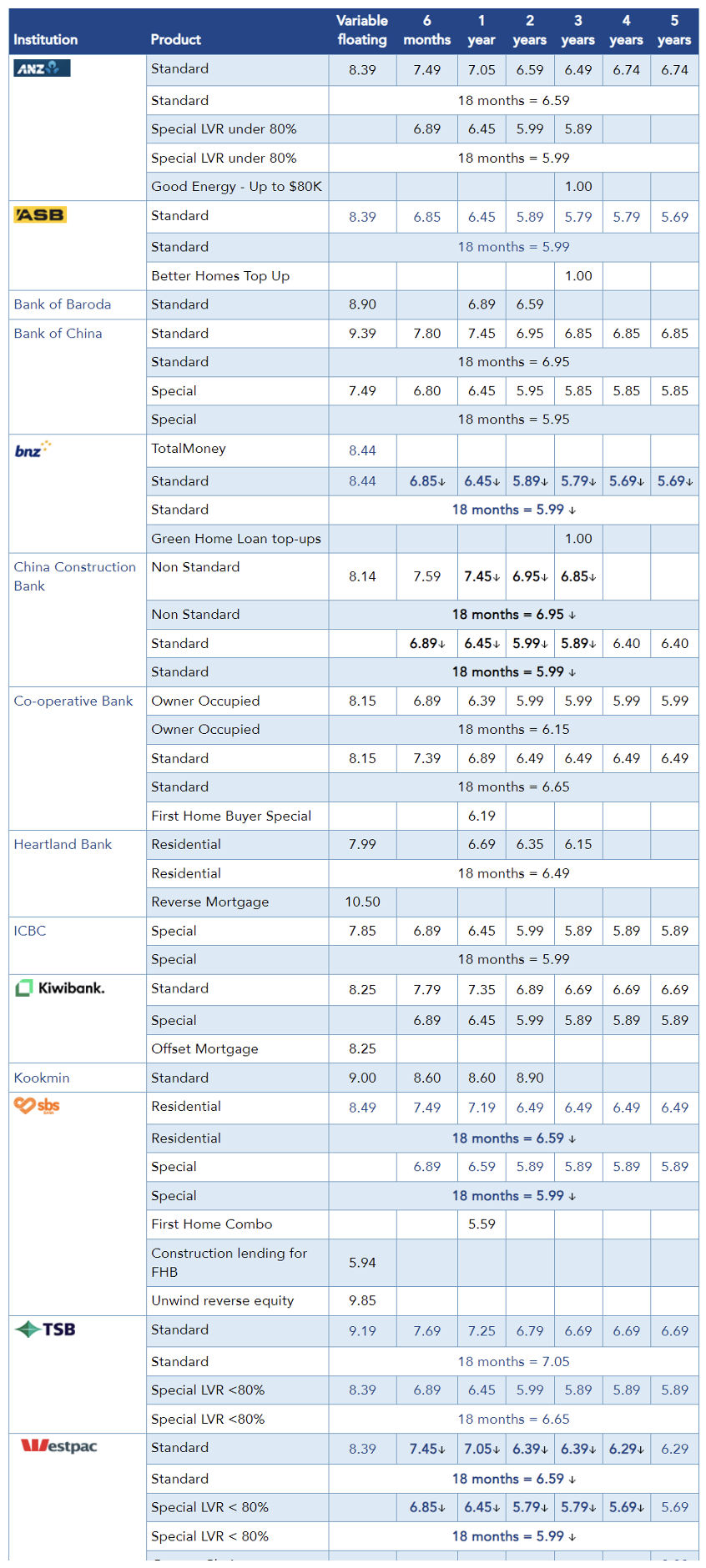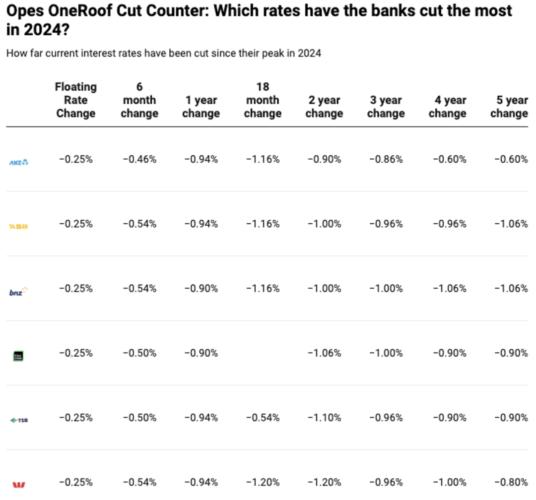 截止目前各银行不同固定周期内降息幅度表(来源:OneRoof)