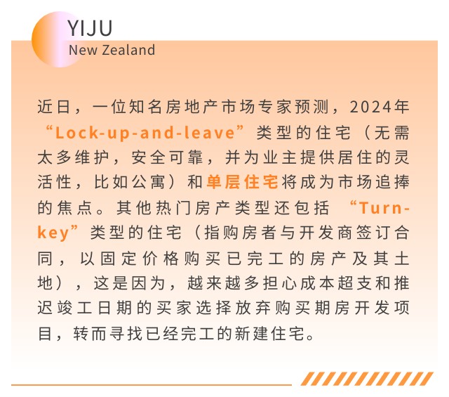 Farhi同时表示,高档公寓也可能会吸引那些希望开拓短期租赁市场的投资者出手,这些改造成Airbnb的公寓和住宅项目可以在业主外出时为他们提供额外的收入。而另一方面,新西兰本国不断增长的老龄化人口也是推动公寓及单层住宅需求的主要群体,这类买家通常会选择出入便利的单层住宅、带电梯的多层住宅,又或是房主居住在一楼,楼上为访客提供额外起居空间的房产类型。