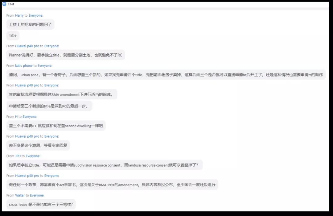 本次线上研讨会反响强烈,观众们纷纷踊跃提问。除了上述问题以外,此次新政对Single House 区的影响也是颇受关注的议题之一。对奥克兰来说,影响最大的可能是Single House区,在场嘉宾们一致认为,如果这个Single House区的物业不是Special Character,应该是可以进一步细分为3个title,具体细则有待地方政府对新政的解读。
