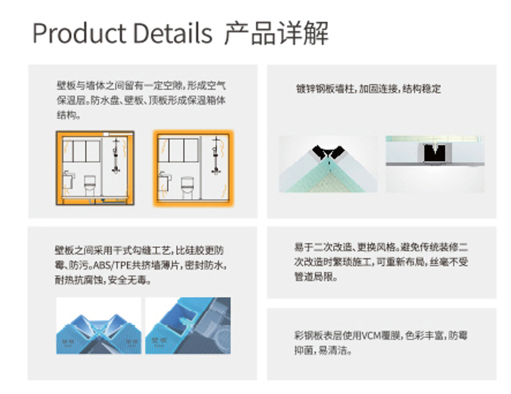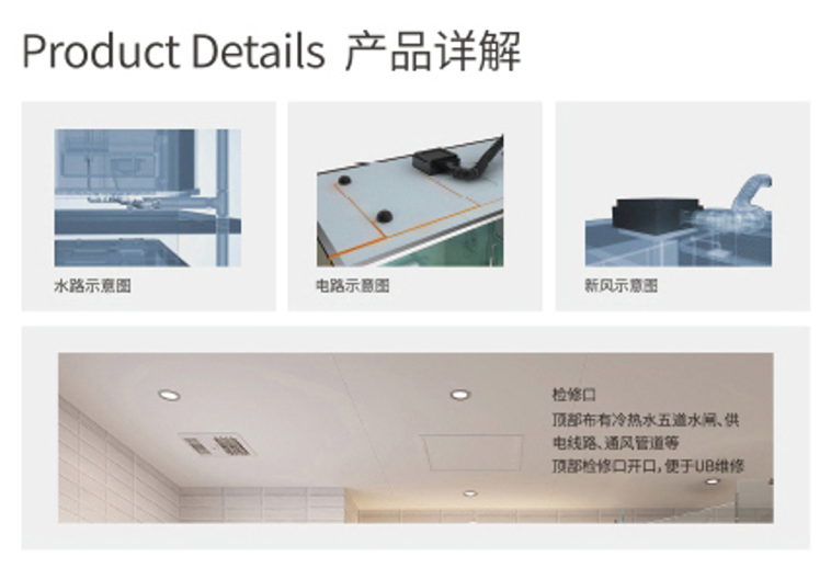 源自德国的品牌贝朗带给我们的是将卫生间整体工业化设计,采用一体化防水盘与壁板,顶板构成整体空间,配套各种功能洁具形成独立卫生单元。