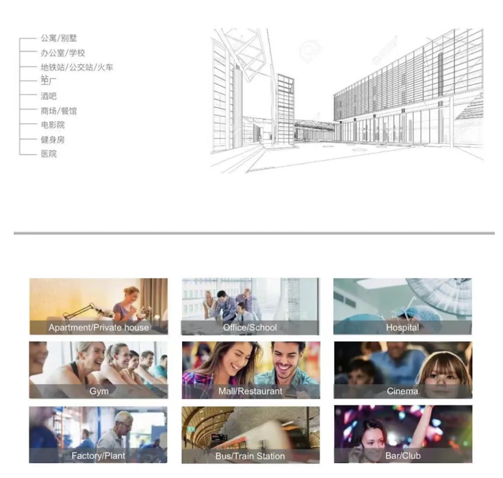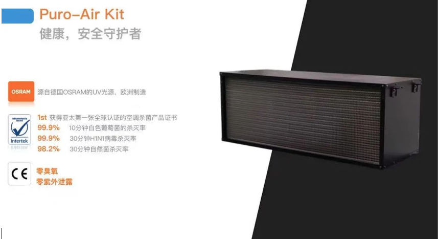 现在商业空调系统基本上都是内循环。为了应对新冠病毒及其他各种细菌病毒在室内通风系统内的传播,美的不久前推出了一款”健康盒子”(Puro-Air Kit ),可以方便的安装在室内通风系统中。通过紫外线杀灭绝大多数细菌和病毒,不仅有助于阻断新冠病毒(SARS-CoV-2)的传播,对其他各类空气传染病都效果非凡。
