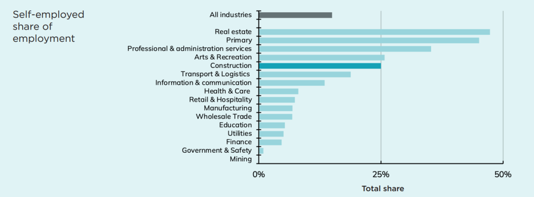 图4:建筑业中四分之一的从业人员都是自主经营者