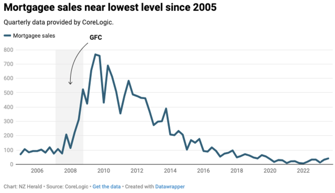 自2020年以来,法拍房上市量一直只占整个市场的很小一部分,每季度法拍房销售量平均为23套,远低于全球金融危机刚结束时每季度超过400套的峰值水平。但在过去的六个月里,OneRoof.co.nz上的法拍房上市数量已增加了20%。一位不愿透露姓名的惠灵顿房贷经纪人表示,高昂的生活成本和公共部门成千上万的裁员将导致更多的法拍房被强制销售。他指出,由于房价下跌,即使在房屋被卖掉之后,卖家仍然可能欠债。