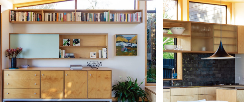 右:饭厅使用可推向侧面打开的飘窗,最大限度保持了与室外活动空间的联结
