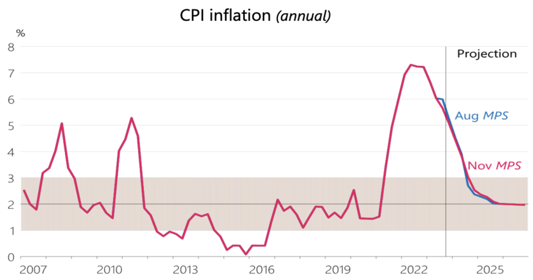最后,唯一不能确定的只是新西兰的利率政策,虽然新西兰央行在11月强硬表态会继续维持高利率对付通胀,其实更多的担心只是来自于对房租上涨的戒心,至于新西兰本地的通胀已经如期回落。