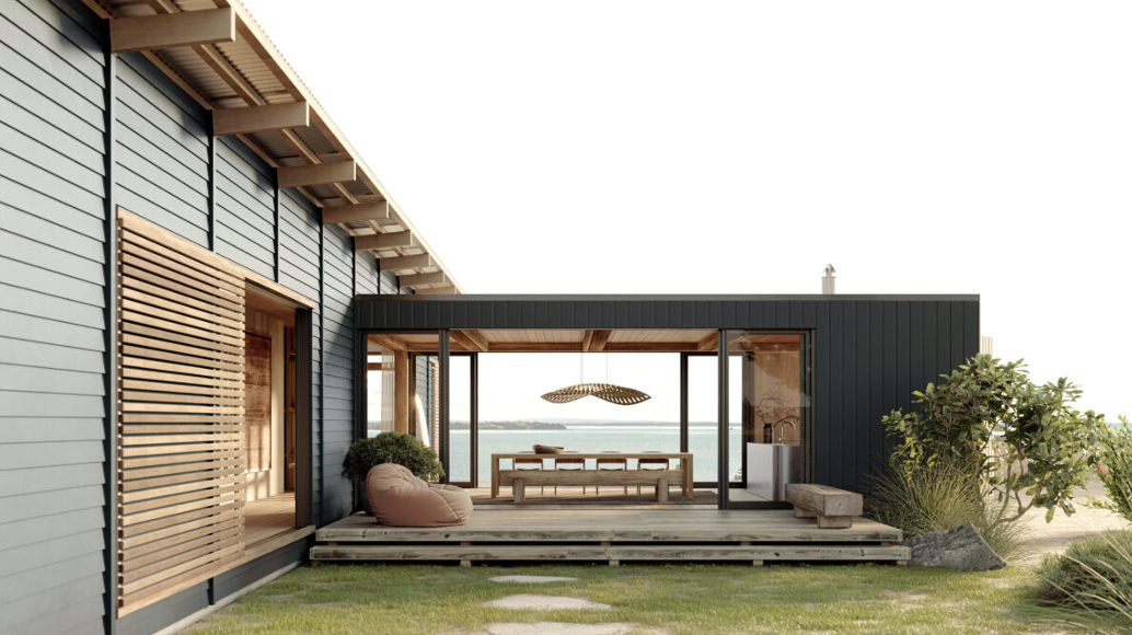 受启发于悠闲的新西兰海滨假日氛围,现代度假屋风格为传统的海滨设计提供了现代化的诠释,其特点包括轻松舒适的空间、现代简约的风格以及质朴深色的外墙板。
