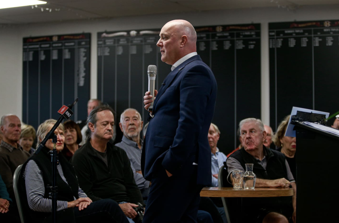 Luxon在北岸Birkenhaed举办的公共会议上发表讲话