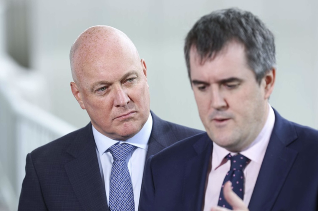 今年3月,新西兰总理Christopher Luxon在听取住房部长Chris Bishop就政府工作重点发表讲话